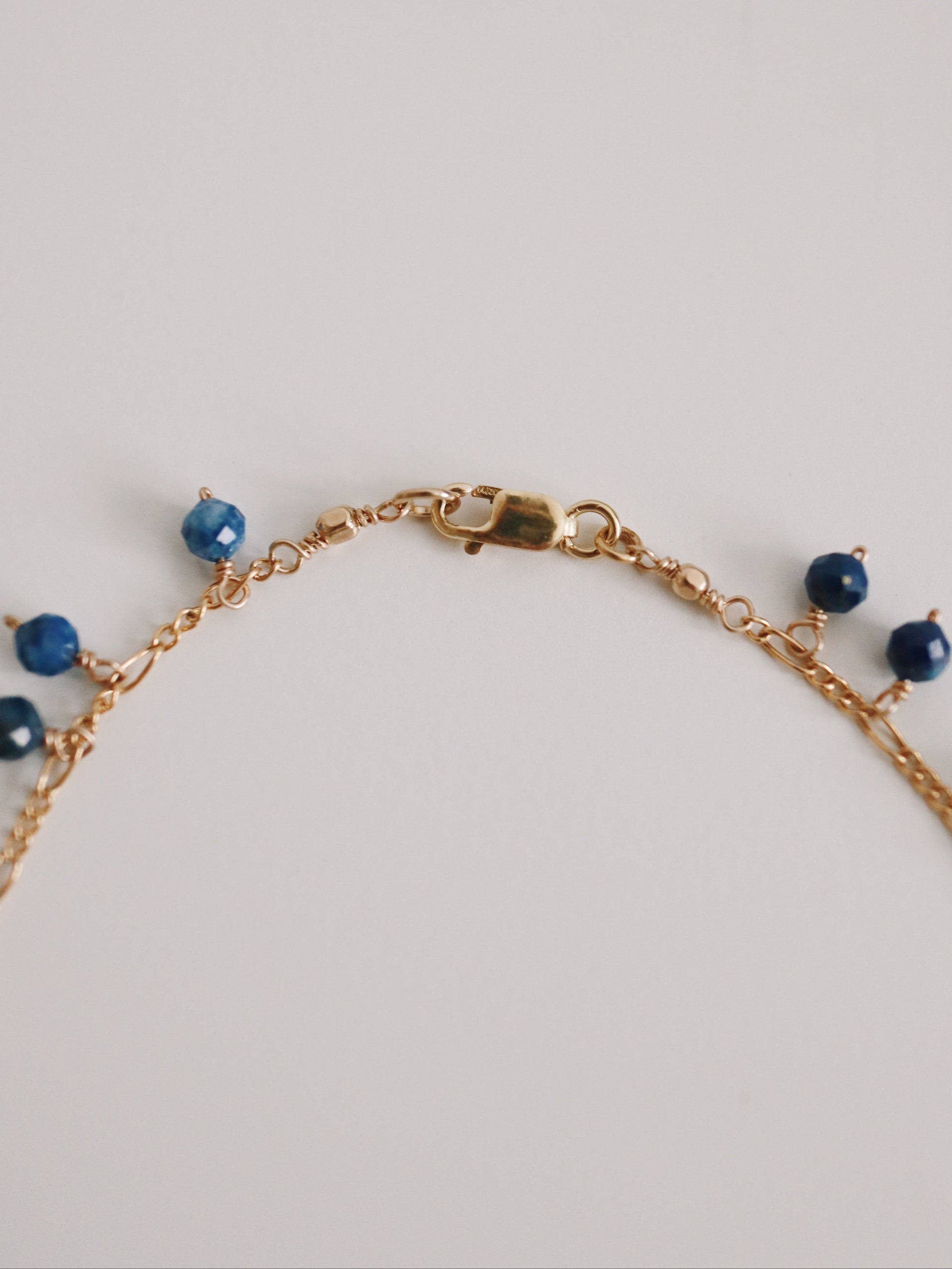 Elevate your elegance with the Ariana Necklace, featuring 14k gold-filled wire-wrapped lapiz azuli gemstones. Its delicate, feminine design makes it an exquisite choice for layering, adding a subtle sophistication to any outfit. This necklace is also waterproof, ensuring lasting beauty and durability for everyday wear.