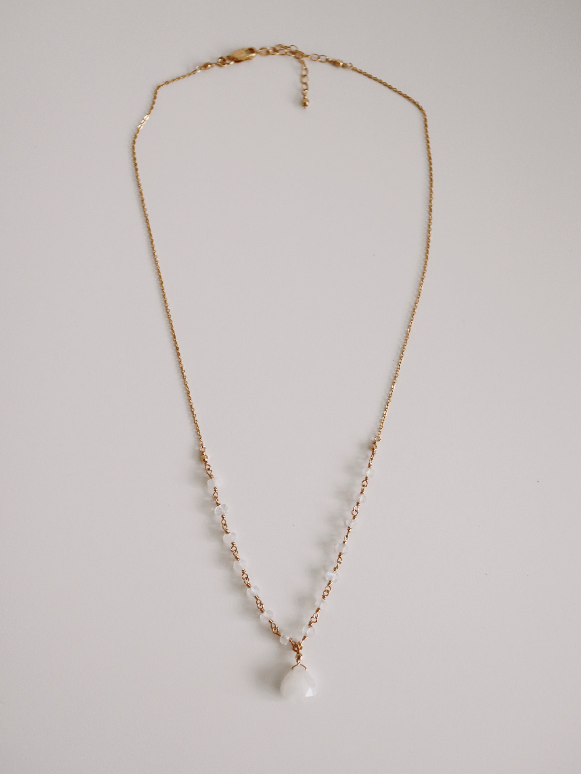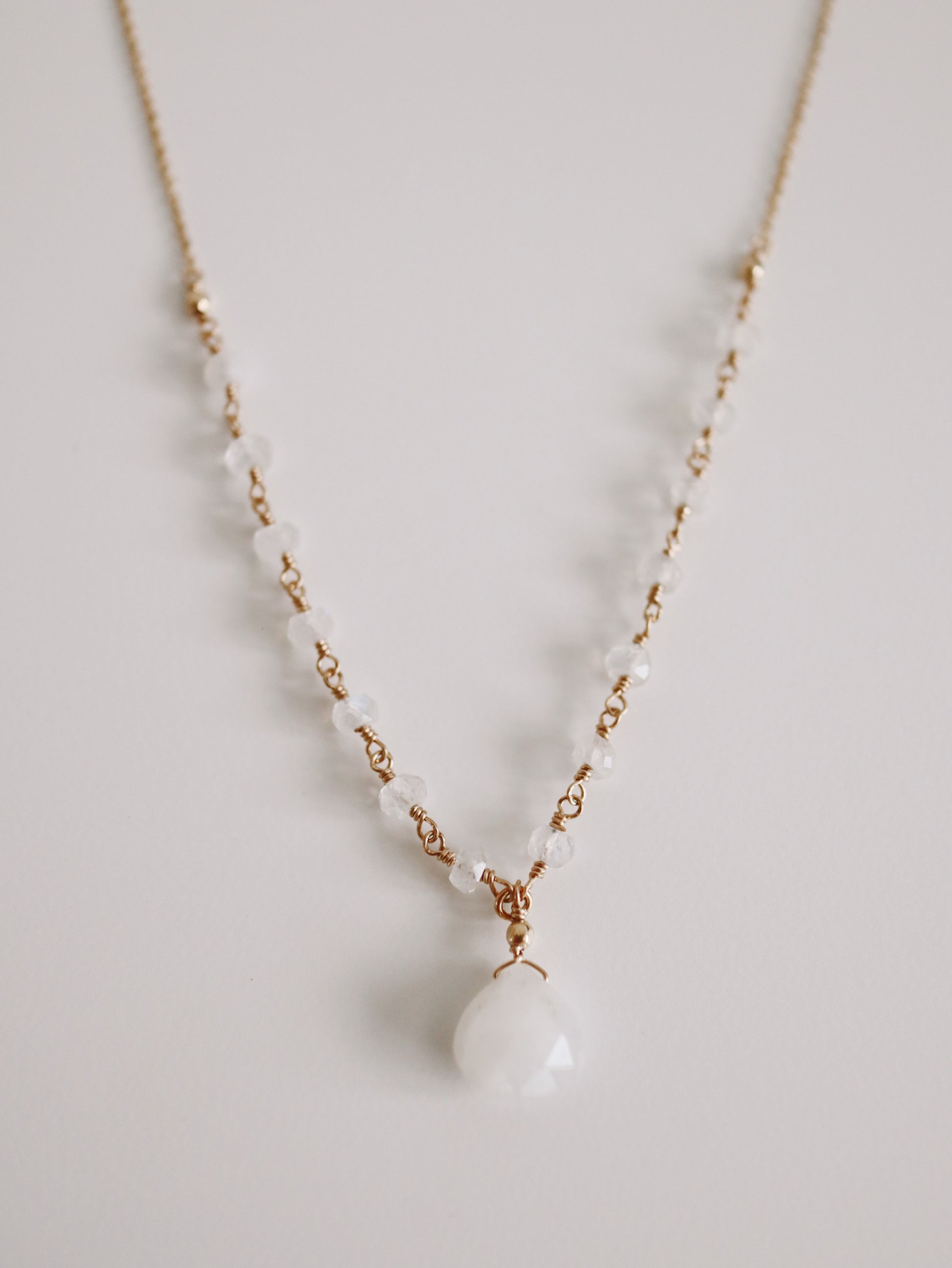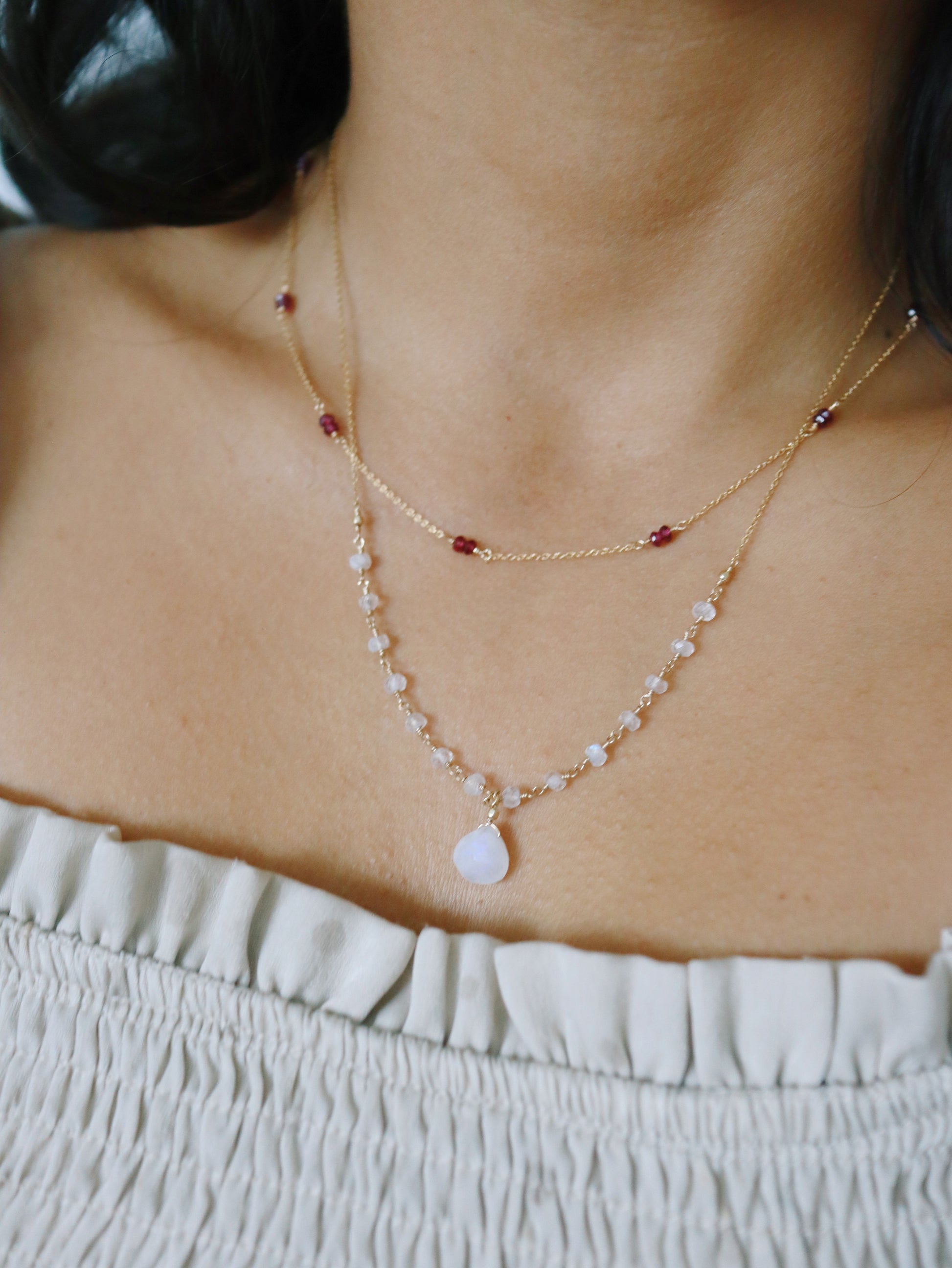 Elevate your elegance with the Charlotte Necklace, featuring 14k gold-filled wire-wrapped moonstone gemstones. Its delicate, feminine design makes it an exquisite choice for layering, adding a subtle sophistication to any outfit. This necklace is also waterproof, ensuring lasting beauty and durability for everyday wear.