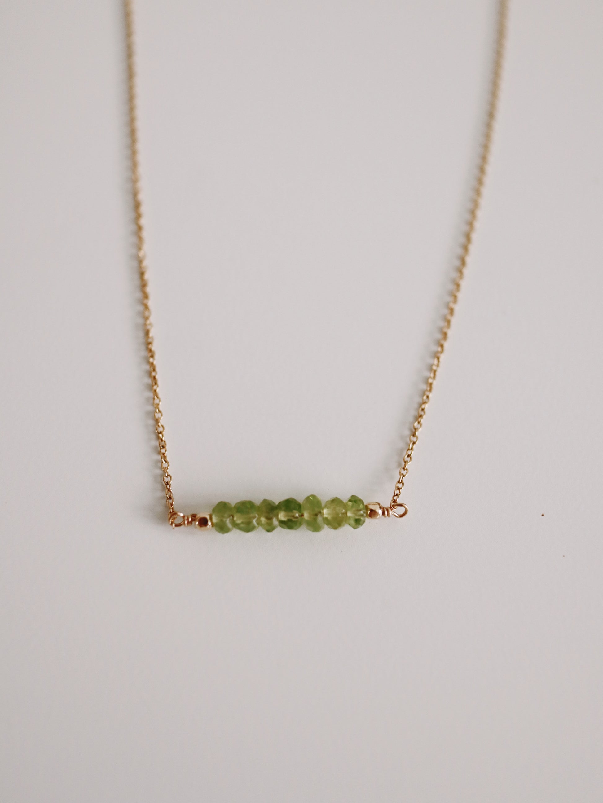 Elevate your elegance with the Luciana Necklace, featuring 14k gold-filled wire-wrapped peridot gemstones. Its delicate, feminine design makes it an exquisite choice for layering, adding a subtle sophistication to any outfit. This necklace is also waterproof, ensuring lasting beauty and durability for everyday wear.