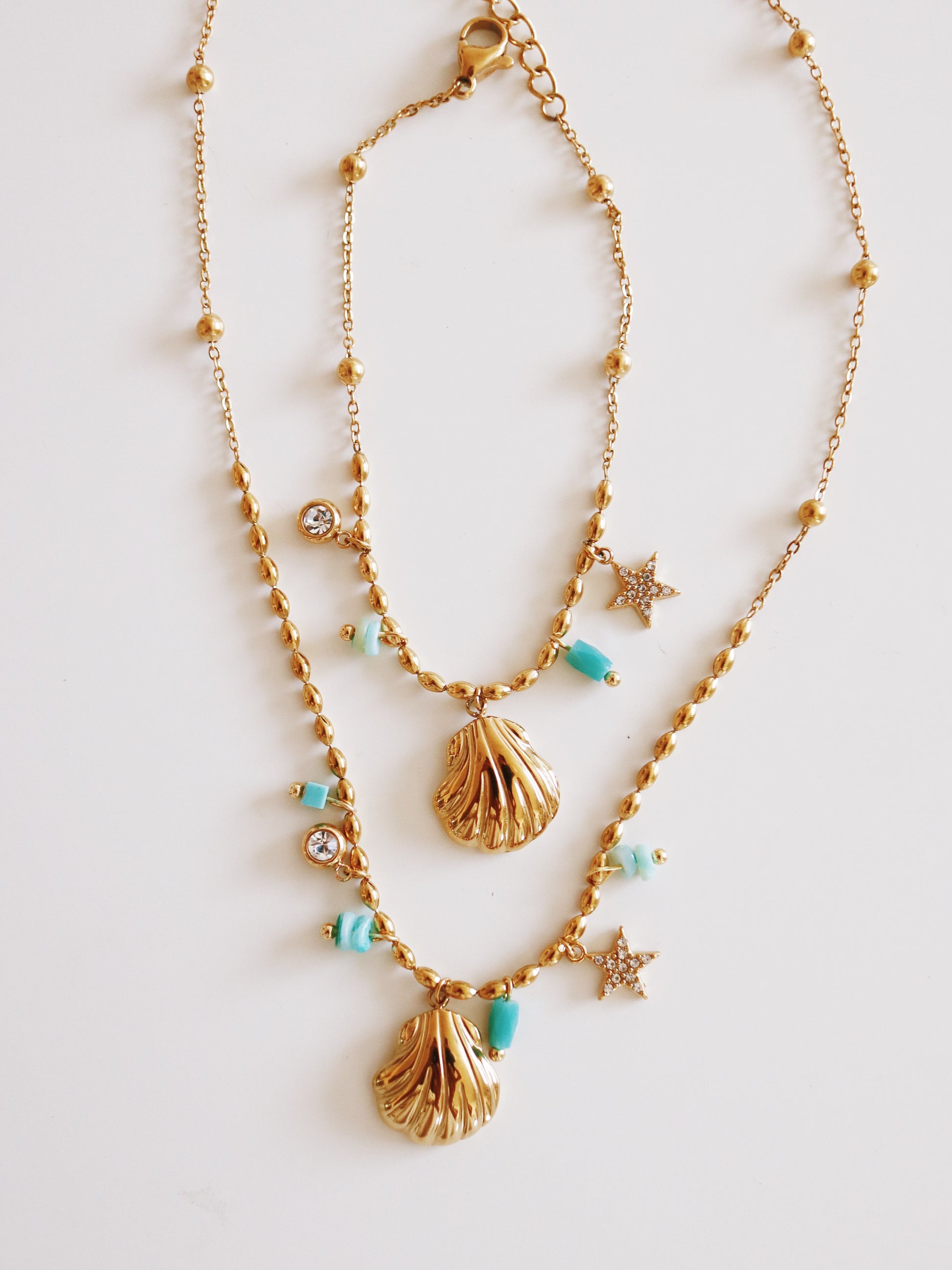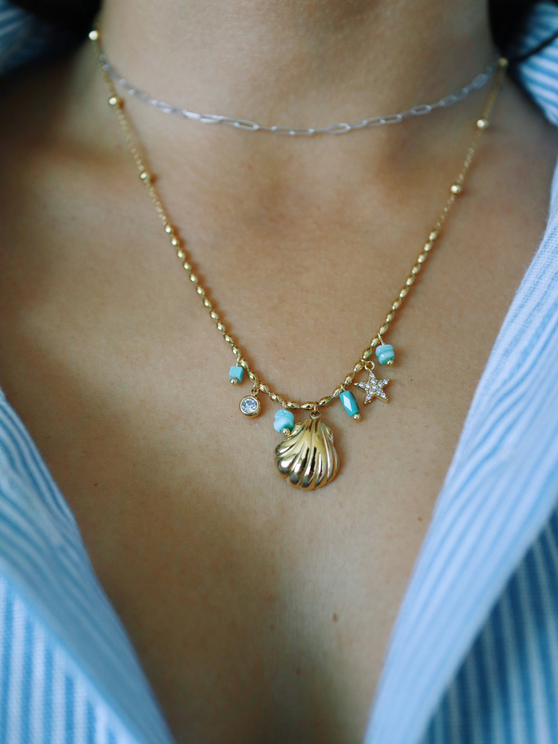 The Maldives Shell Necklace features delicate charms encircling a beautiful main shell pendant. Waterproof and hypoallergenic, it offers lasting comfort and style. Adjustable up to 18 inches, it’s perfect for layering with your favorite necklaces. Complete your look with the matching bracelet for a stunning, coordinated set inspired by ocean elegance.