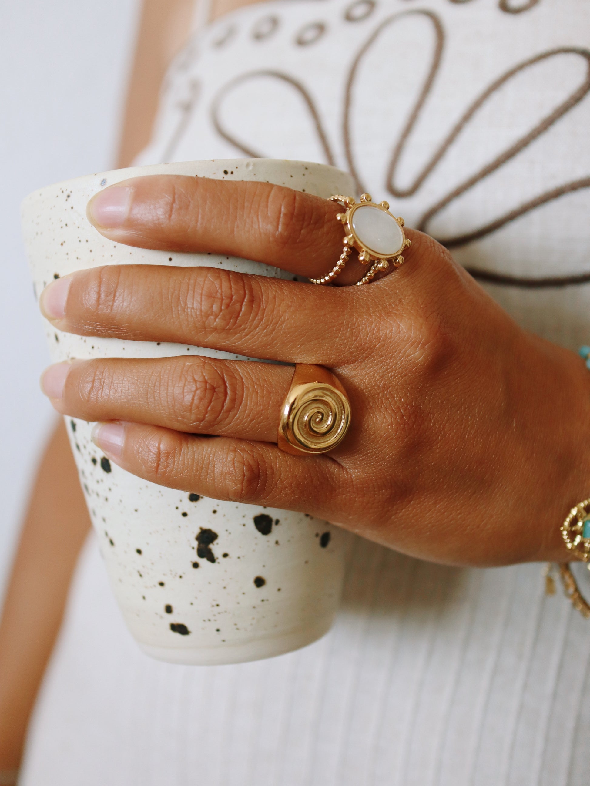 Make a bold statement with the Mentawai Ring, a chunky signet-style piece inspired by the ocean’s beauty. Waterproof and hypoallergenic, it offers lasting comfort and durability. Perfect for stacking or wearing solo, this ring adds a striking touch to any jewelry collection.