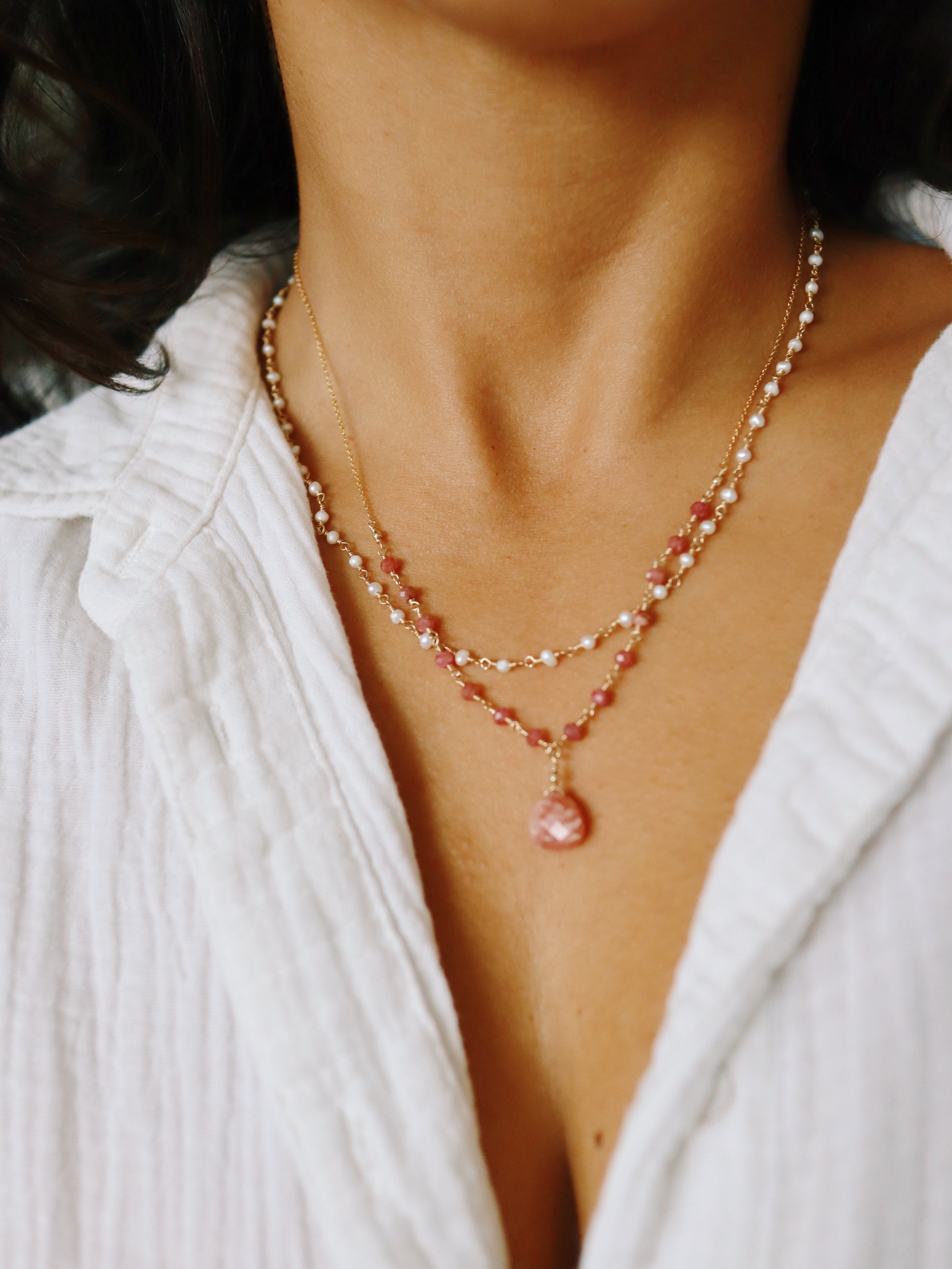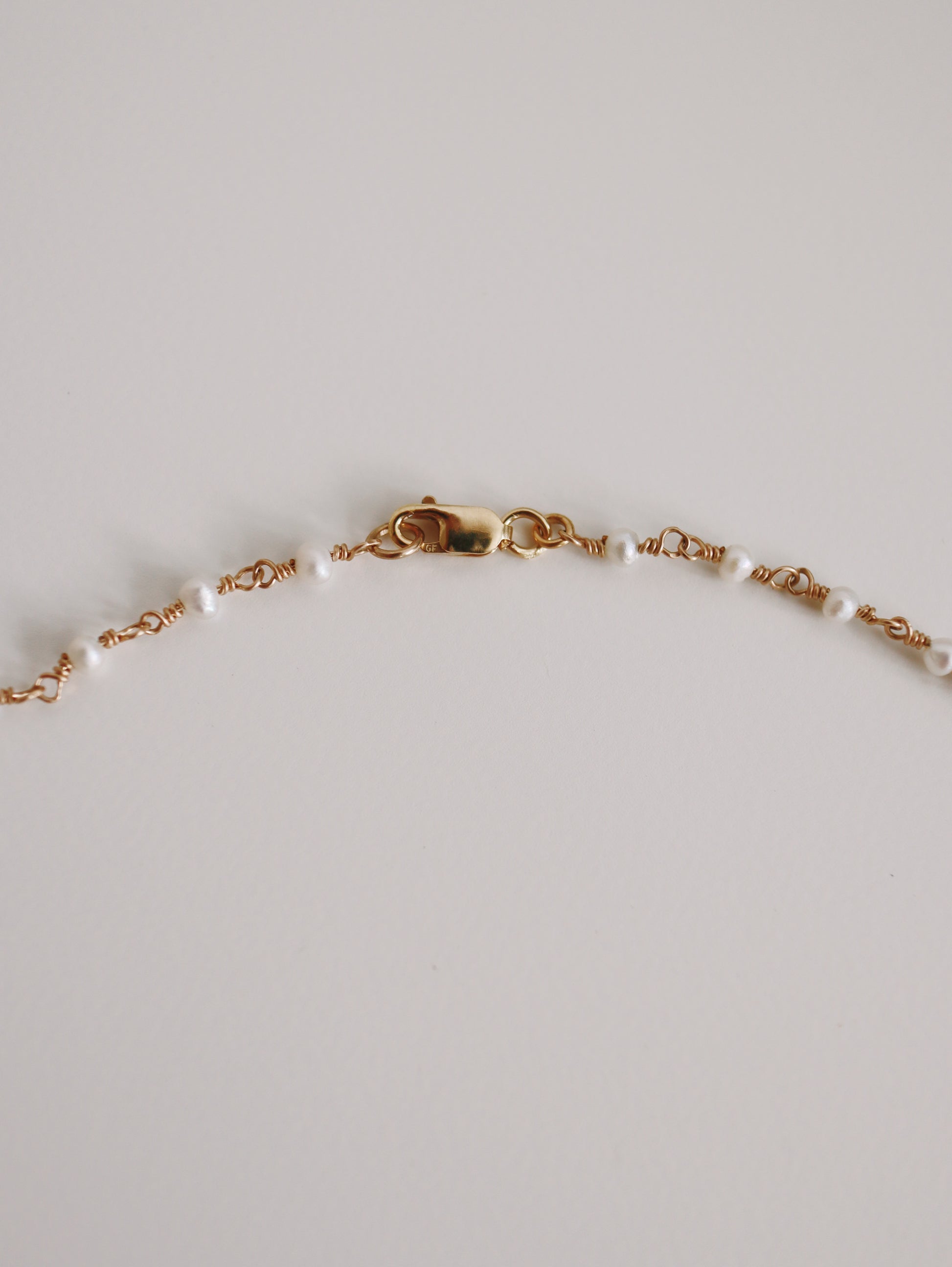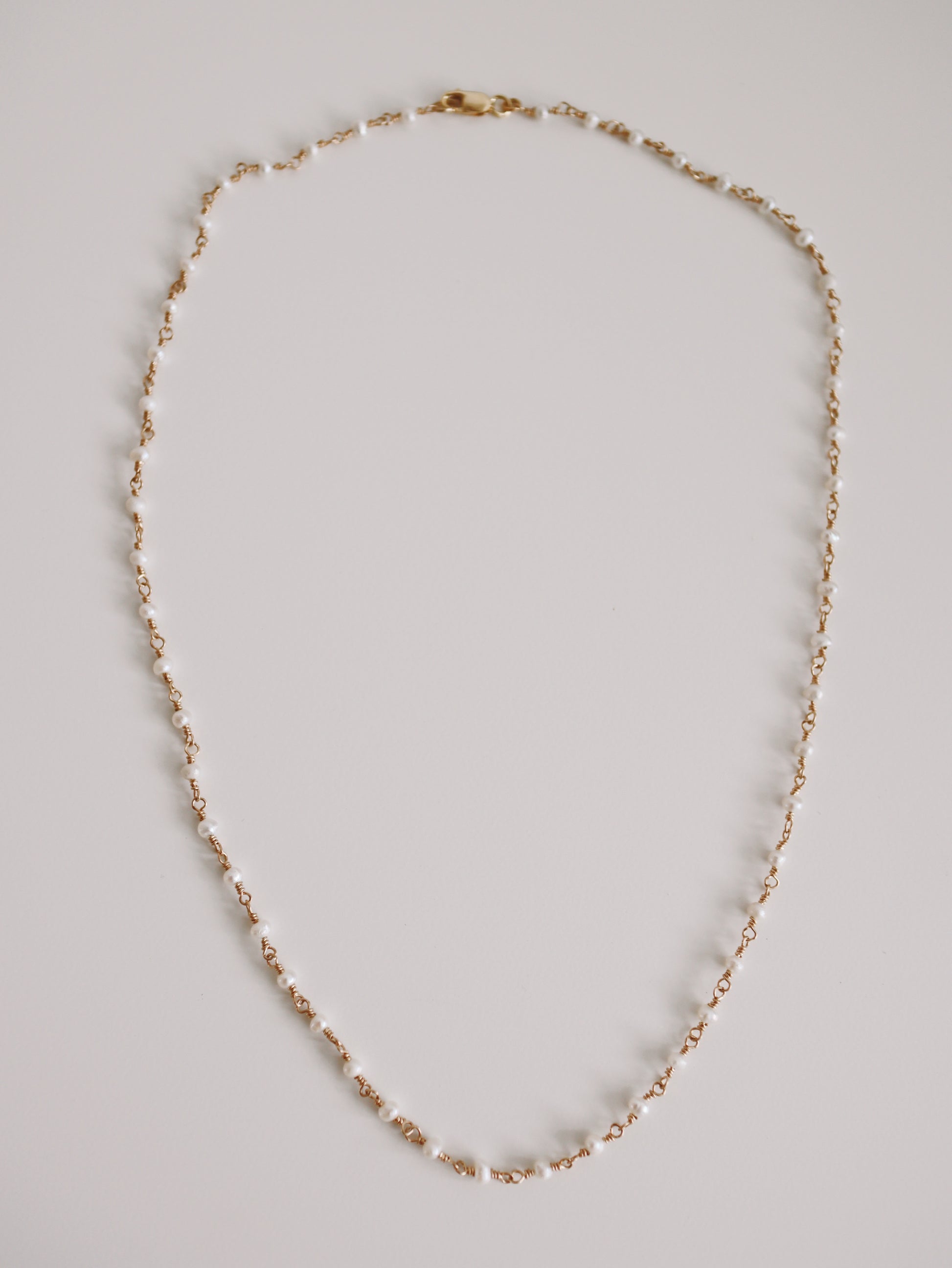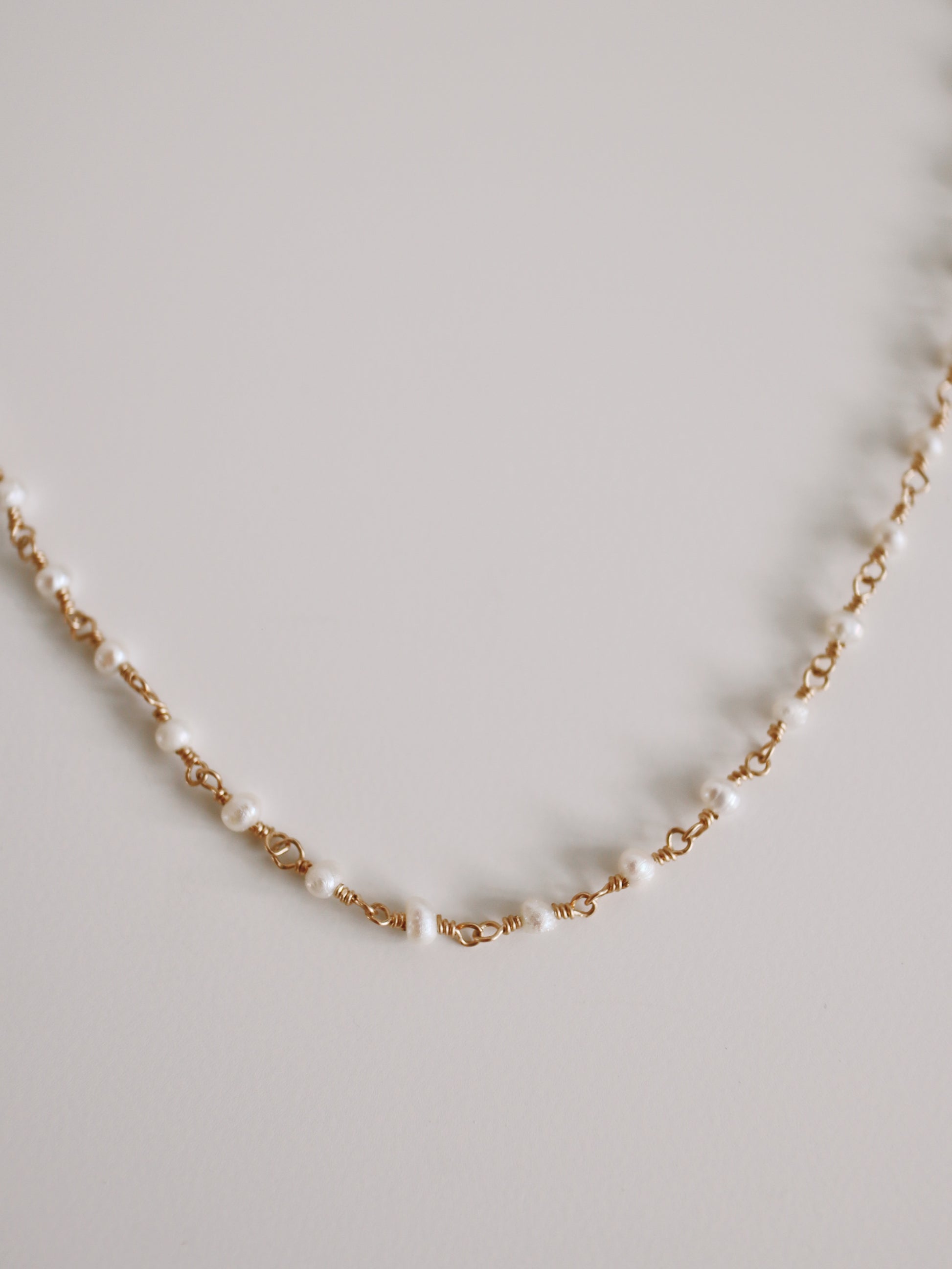 Elevate your elegance with the Adelaide Necklace, featuring 14k gold-filled wire-wrapped freshwater pearls. Its delicate, feminine design makes it an exquisite choice for layering, adding a subtle sophistication to any outfit. This necklace is also waterproof, ensuring lasting beauty and durability for everyday wear.