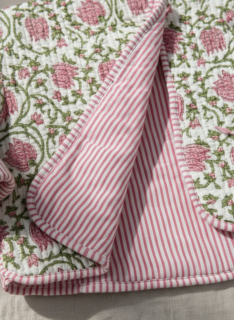 Crafted from pure cotton with a refined quilted texture, this versatile jacket seamlessly transitions between occasions. The reversible design offers two distinct looks in one piece, while generous front pockets add practical elegance. Cut in an oversized silhouette for effortless comfort and layering, it's an ideal companion for bridal showers, weekend getaways, and everyday sophistication.