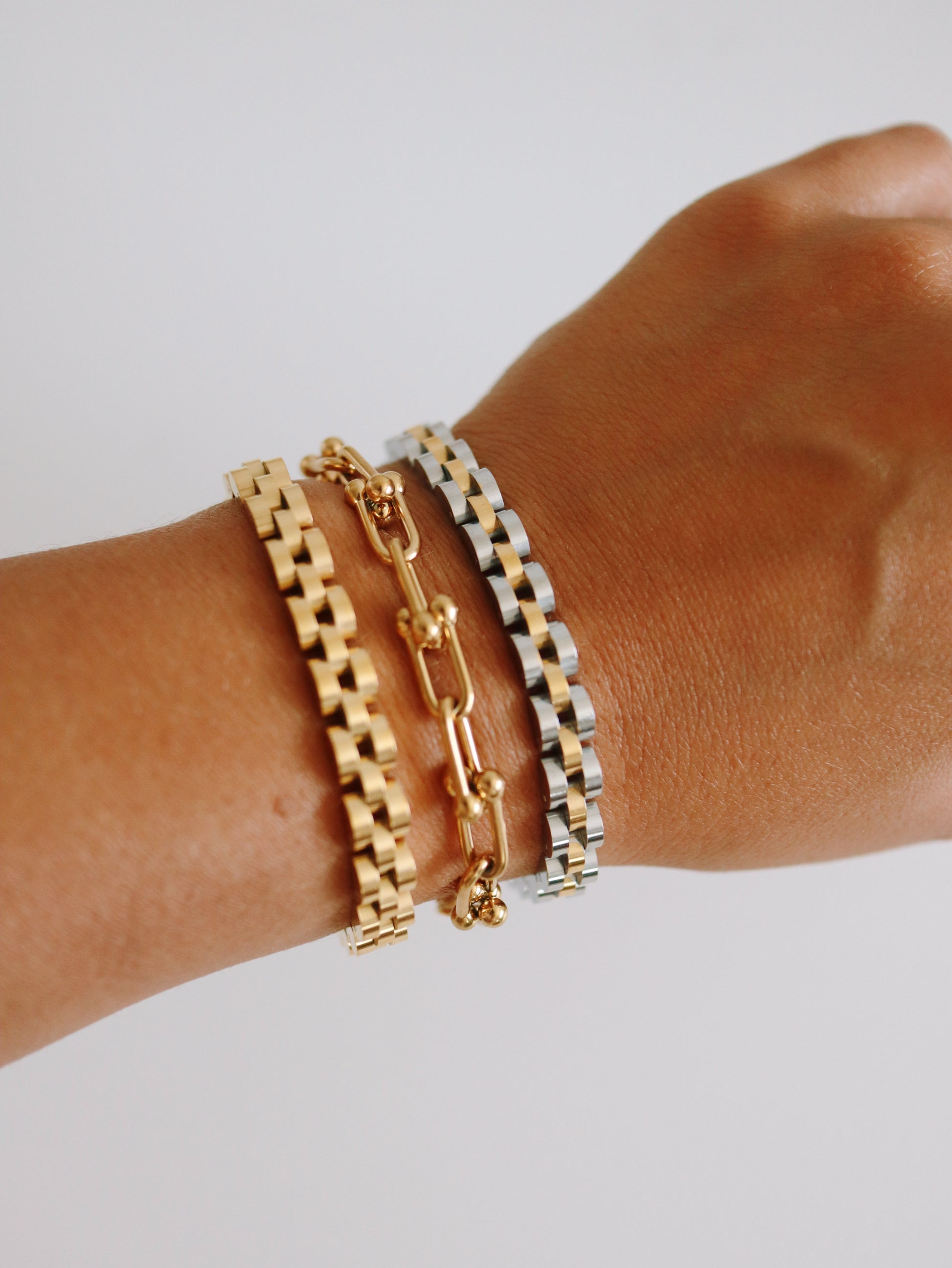 The Anaka Bracelet is an elegant and versatile piece, perfect for daily wear. With two sizes available, one measuring 6.7 inches and the other 7.5 inches long , it allows for a customizable fit. Its chunky design and non-tarnishing, hypoallergenic materials make it suitable for stacking and waterproof for all-day wear.