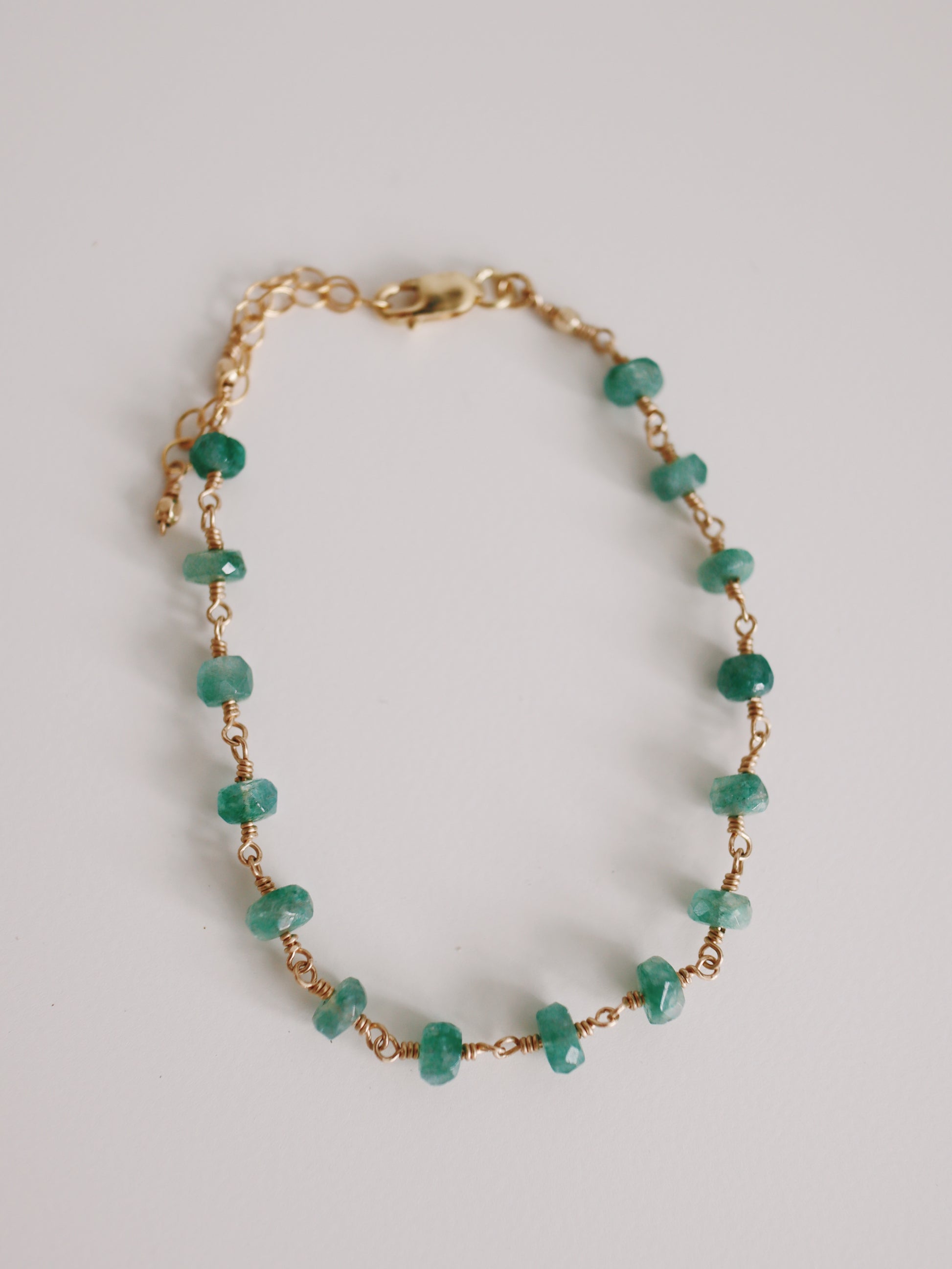 The Esmeralda Bracelet blends delicate 14k gold-filled craftsmanship with elegant emerald gemstones, creating a refined and feminine accessory. Its dainty design is perfect for stacking, adding graceful layers to your wrist. Waterproof and enduring, this bracelet complements any look with effortless sophistication.