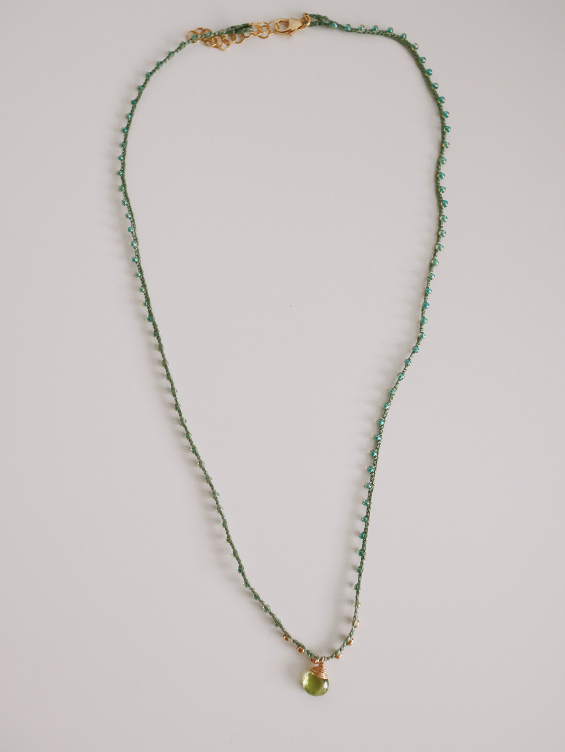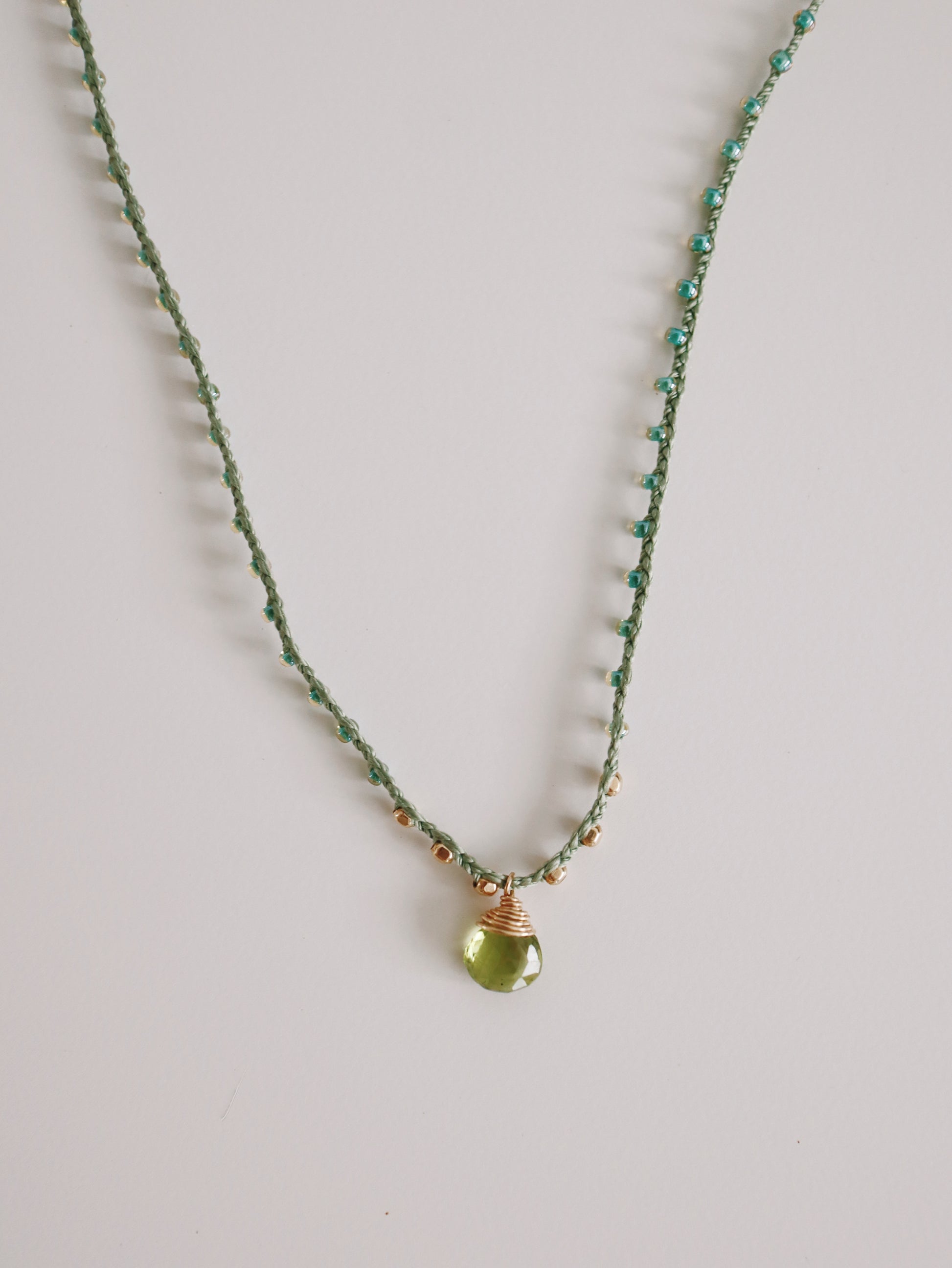 Elevate your elegance with the Rochelle Necklace, featuring a 14k gold-filled wire-wrapped peridot center gemstone and gold filled beads. Its delicate, feminine design makes it an exquisite choice for layering, adding a subtle sophistication to any outfit. This necklace is also waterproof, ensuring lasting beauty and durability for everyday wear.