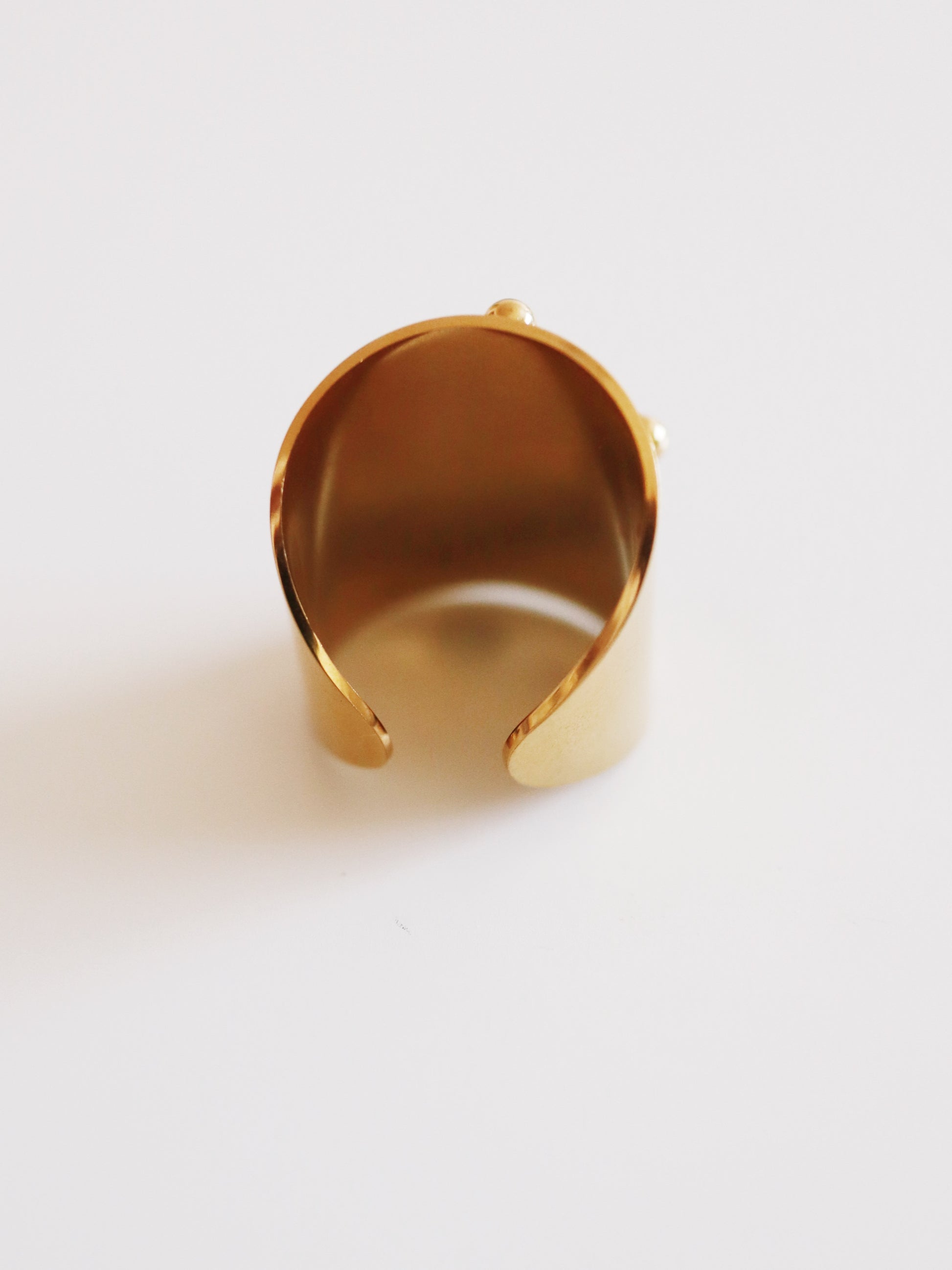 The Hera Ring is a striking statement piece crafted from durable stainless steel, designed to remain tarnish-free for lasting elegance. Its bold yet refined look draws attention effortlessly, whether worn solo or stacked with other rings for a sophisticated ensemble.