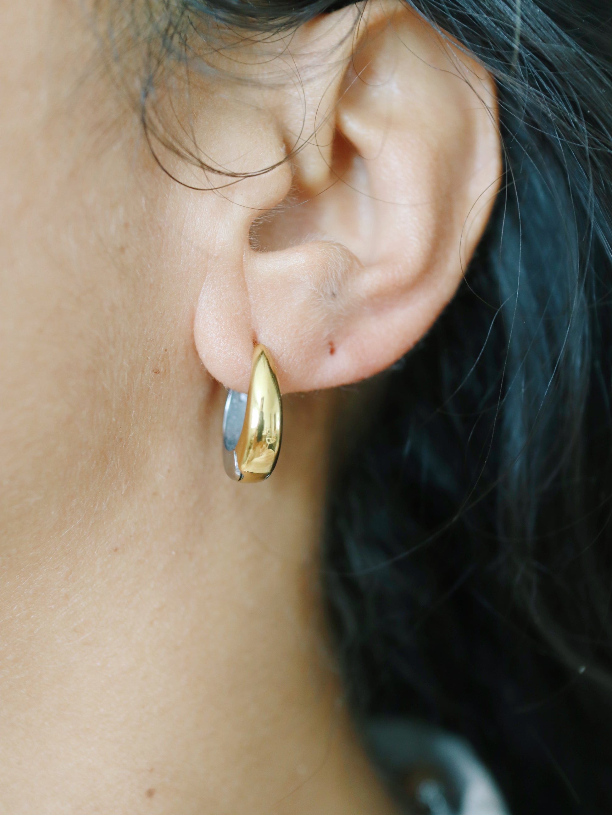 The Penelope Earrings offer a sophisticated blend of lightweight comfort and durable design. Featuring a chic two-tone color palette, these tarnish-free and waterproof earrings are perfect for elegant stacking, adding a refined touch to any ensemble.